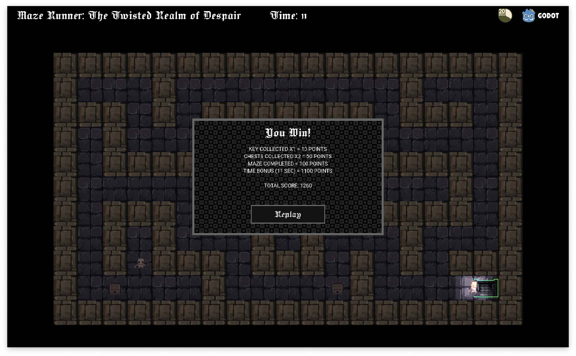 This is my submission for the Second 20 Game jam. I found out about the Jam in the final week, so this project is not polished. It needs some audio and cleanup, but it's still pretty functional and fun. Each time the maze loads, the system procedurally generates a new maze using a variety of tile maps to create a handful of unique biomes, and enemies to give some variety (it even generates a random name for the maze).
